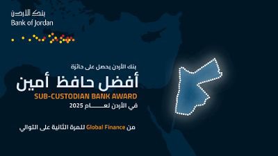 بنك الأردن يحصل على جائزة "أفضل حافظ أمين في الأردن لعام 2025" من جلوبال فاينانس للمرة الثانية على التوالي