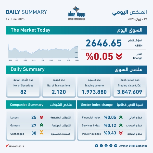 البنك الأهلي الأردني يحصد جائزة مرموقة في المعايير البيئية والاجتماعية والحوكمة للمرة الثانية على التوالي
