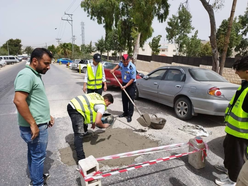 مبادرة شبابية بلواء الطيبة لمعالجة حُفر الشوارع