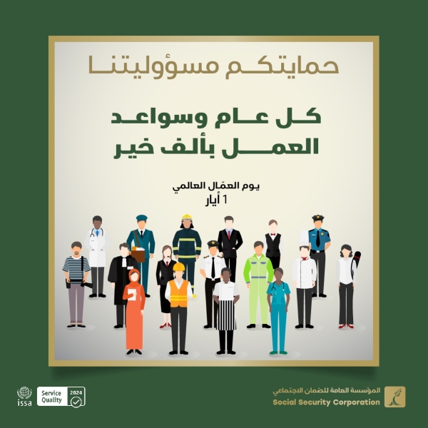 مؤسسة الضمان توجه تحية تقدير واعتزاز لكافة العمَّال على أرض المملكة بمناسبة يوم العمّال العالمي