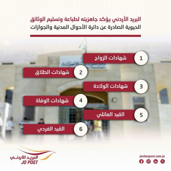 البريد الأردني يؤكد جاهزيته لطباعة وتسليم الوثائق الحيوية الصادرة عن دائرة الأحوال المدنية والجوازات