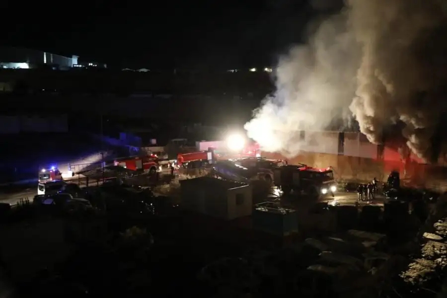 إخماد حريق هنجر (بالة) بالمنطقة الحرة في محافظة الزرقاء