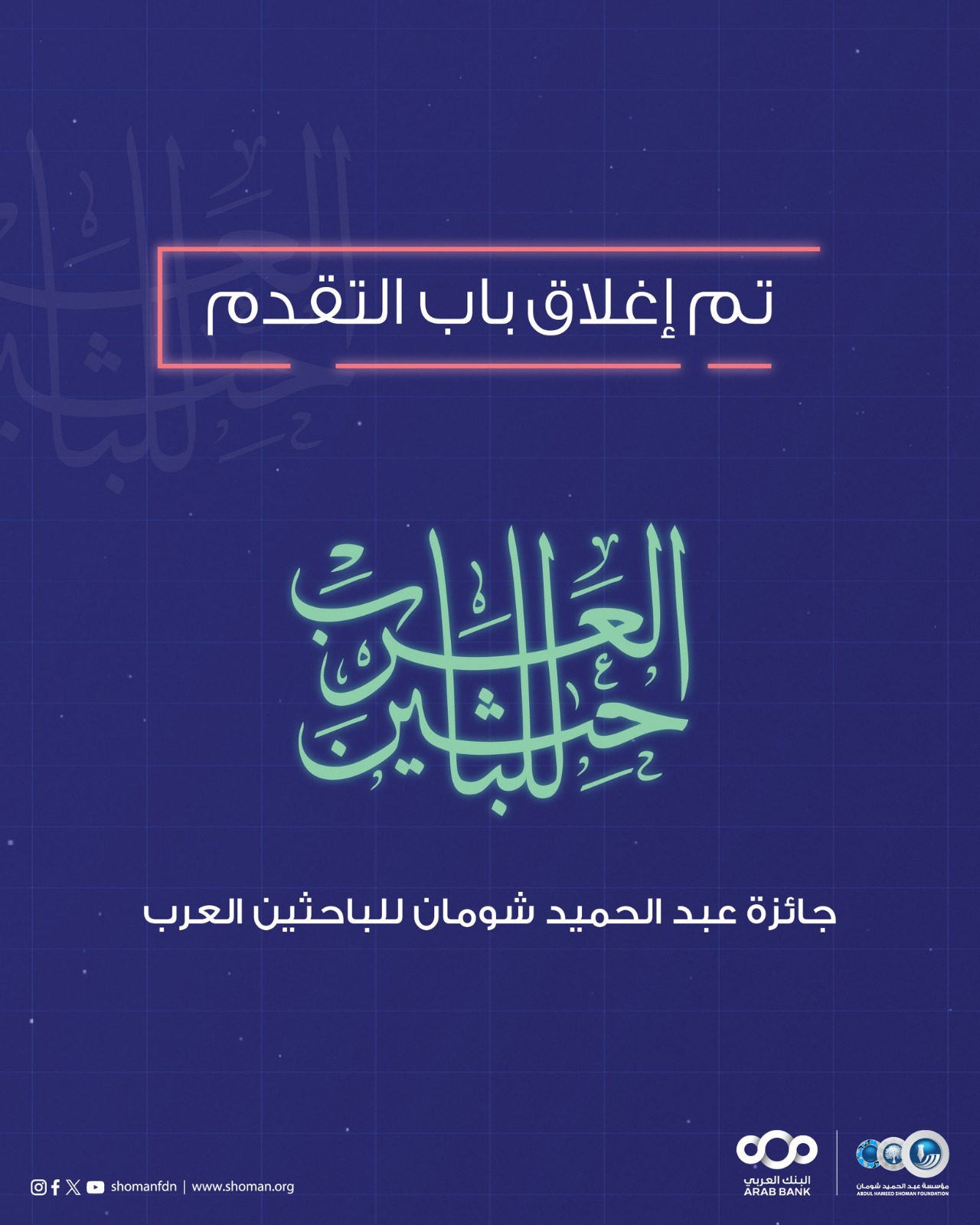 إغلاق باب التقدم لجائزة "شومان" للباحثين العرب للعام 2025