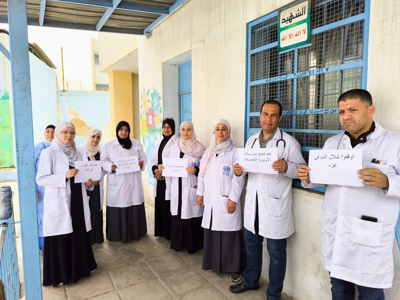 وكاله الغوث في مخيم البقعه تنظم وقفه تضامنيه دعم لاهلنا في غزه