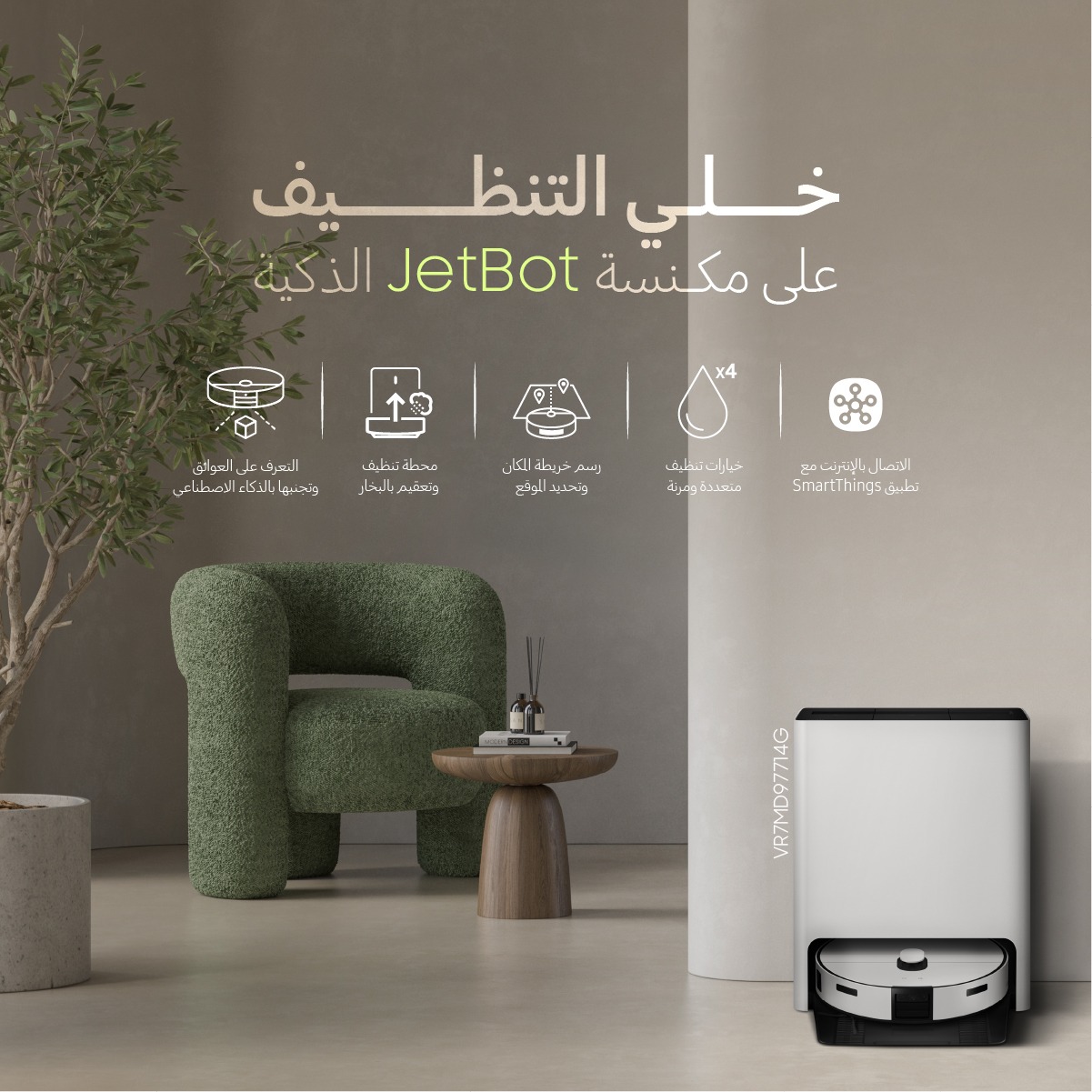 لتنظيف شامل مع التعقيم بالبخار سامسونج إلكترونيكس المشرق العربي تطلق مكنسة Bespoke Jet Bot Combo Steam AI الروبوتية