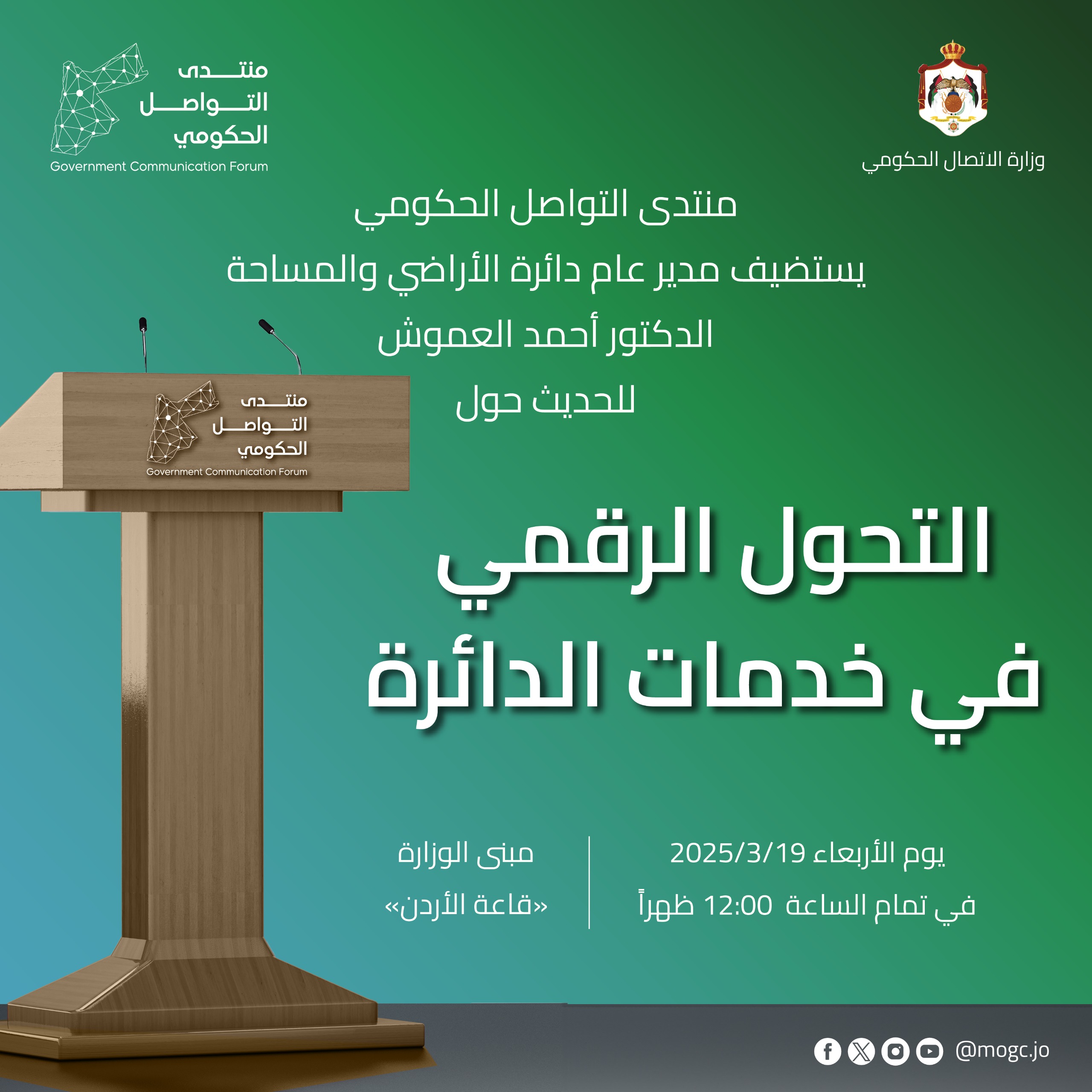 منتدى التواصل الحكومي يستضيف مدير عام دائرة الأراضي والمساحة