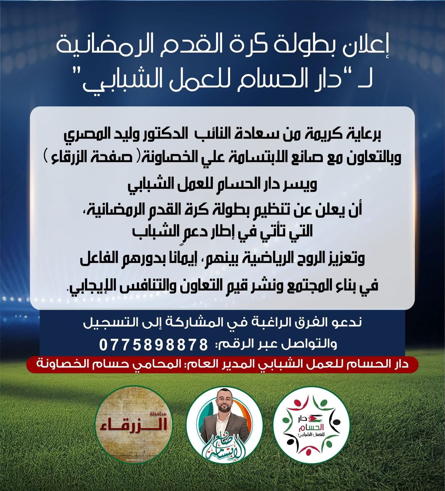 إعلان بطولة كرة القدم الرمضانية لـ “دار الحسام للعمل الشبابي