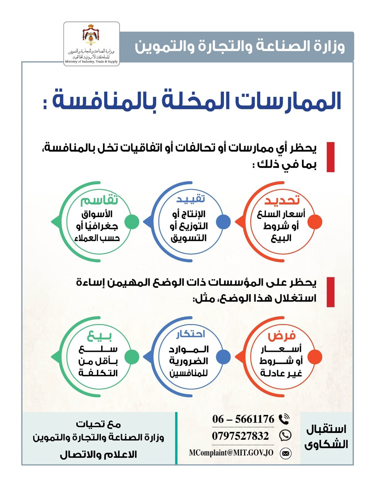 "الصناعة والتجارة" تؤكد ضرورة الاحتكام لقانون المنافسة ومحظوراته