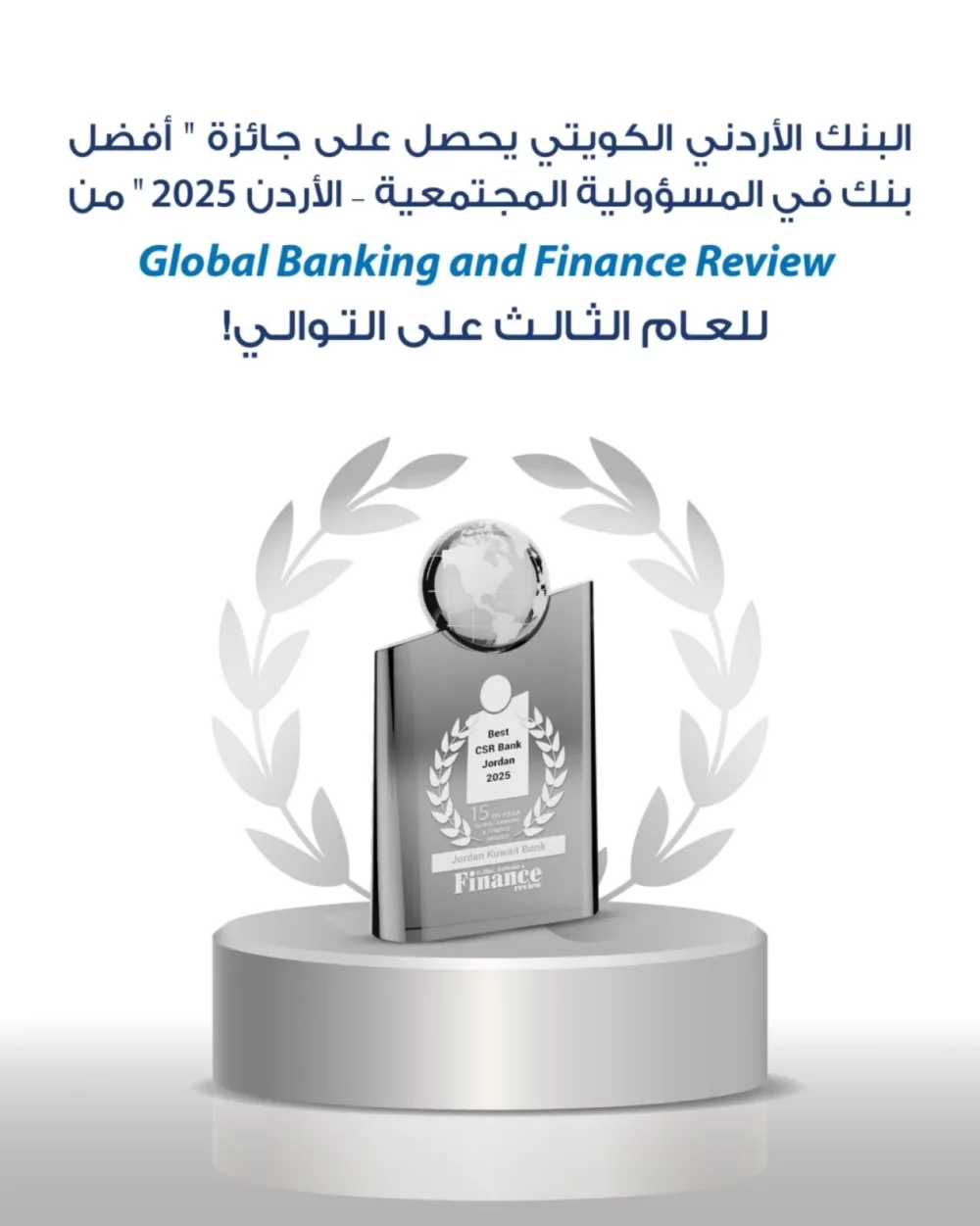 البنك الأردني الكويتي “أفضل بنك في الأردن في مجال المسؤولية المجتمعية” لعام 2025