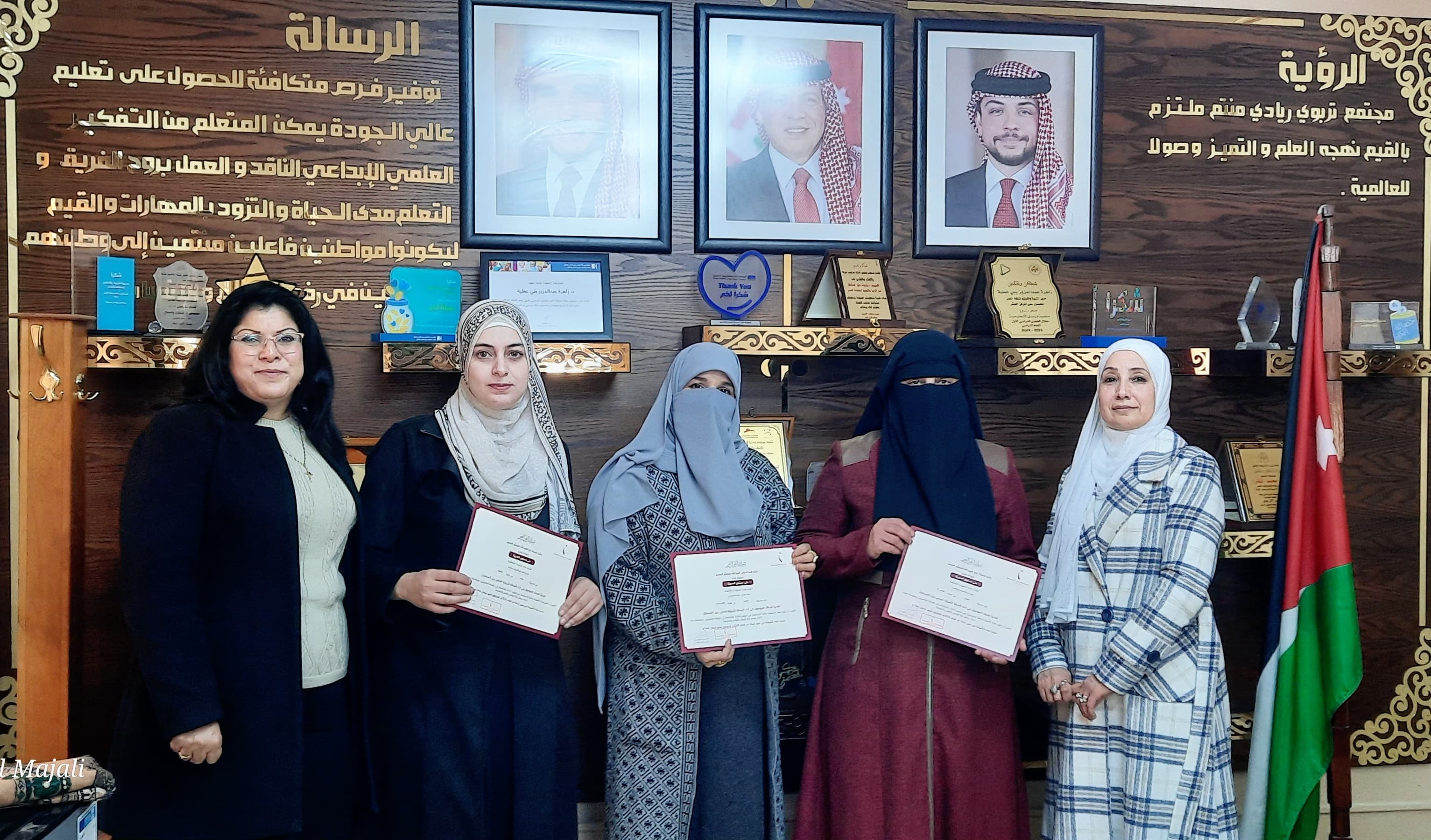 بني عطية تكرم الزملاء الحاصلين على شهادات تقدير لجائزة الملكة رانيا العبدالله للتميز التربوي في تربية القصر