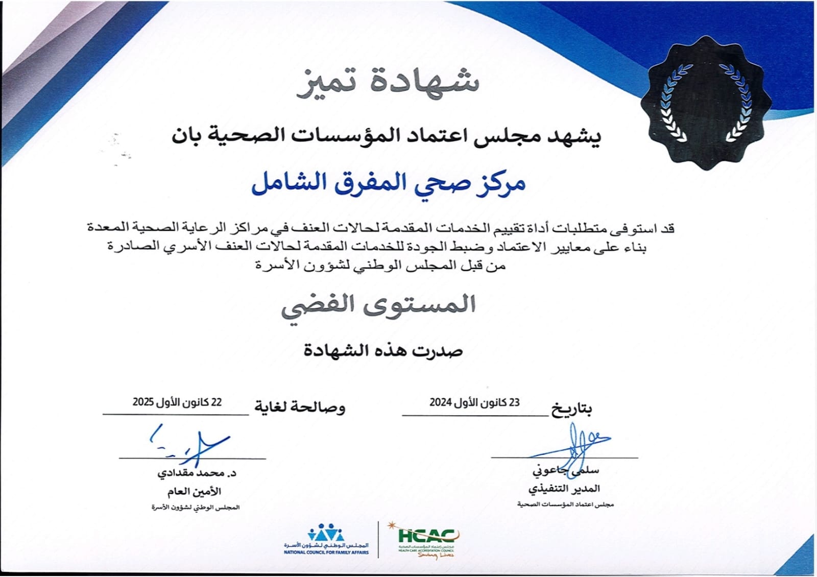 مركز صحي المفرق الشامل يحصل على اعتمادية الحالات المتعلقة بالعنف الأسري
