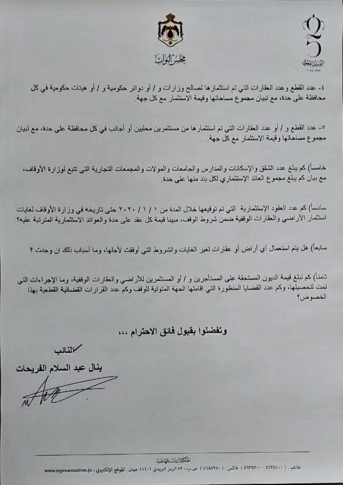 النائب فريحات يفتح ملف اراضي وعقارات الأوقاف