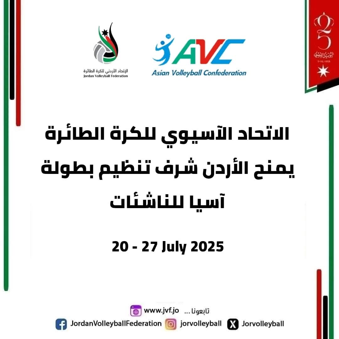 الأردن يستضيف بطولة آسيا للناشئات بالكرة الطائرة