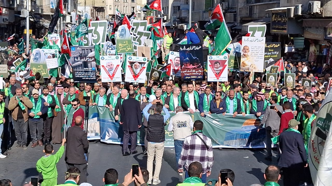 عاجل - الأكبر منذ 7 اكتوبر - آلاف الأردنيين يحيون ذكرى انطلاقة حماس في مسيرة حاشدة