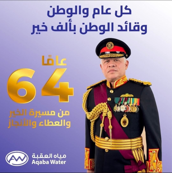 شركة مياهنا تهنئ جلالة الملك بعيد ميلاده ال64