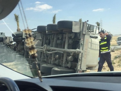 إصابة سائق بتدهور صهريج إسمنت على الطريق الصحراوي