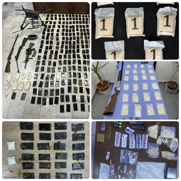 إدارة مكافحة المخدرات تلقي القبض على عصابة إقليمية لتهريب المخدرات مكونة من خمسة أشخاص ، وتضبط بحوزتهم 270 كف حشيش وسلاحاً نارياً أوتوماتيكياً
