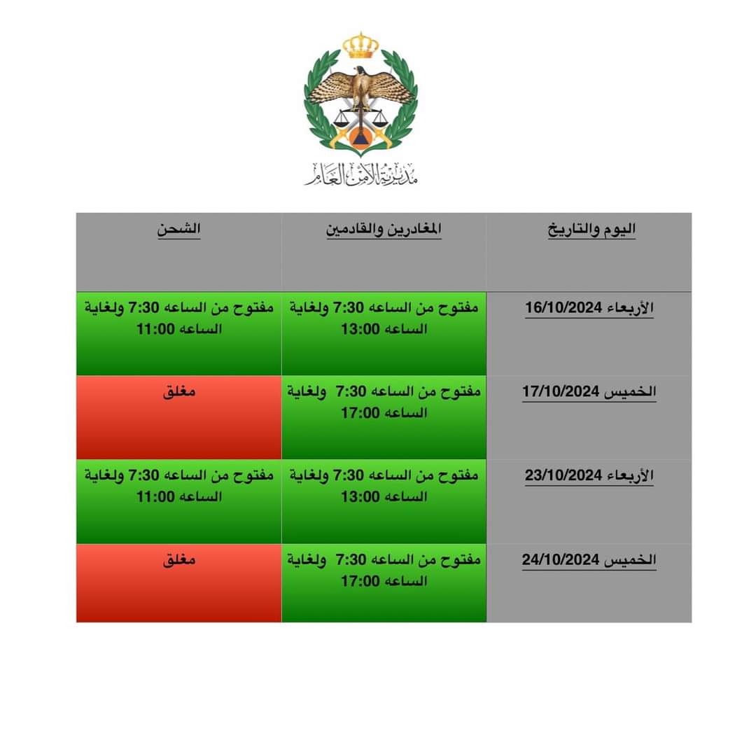 تعديلات جديدة لأوقات عمل جسر الملك حسين