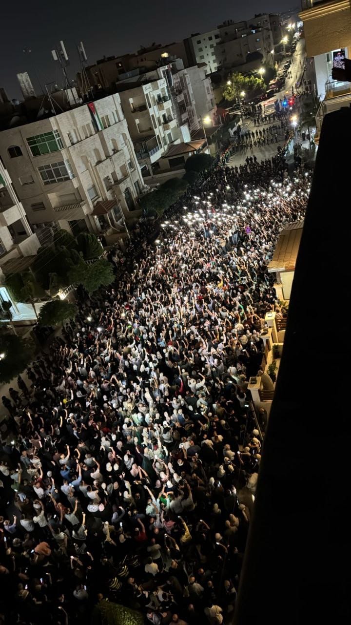 A protest demonstration near the occupation embassy in the Jordanian capital; In support of Gaza and the resistance, denouncing the occupation’s massacres