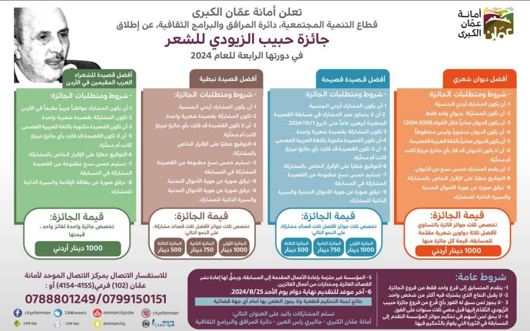 أمانة عمان تطلق جائزة حبيب الزيودي للشعر