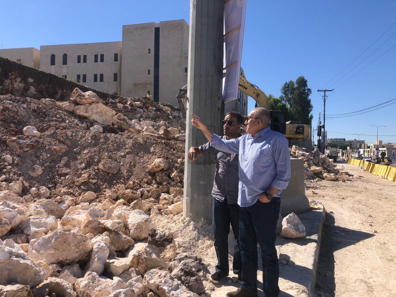 وزير الأشغال يتفقد الأعمال بمشروع مبنى "مخابرات البلقاء" وجدار نفق الدبابنة
