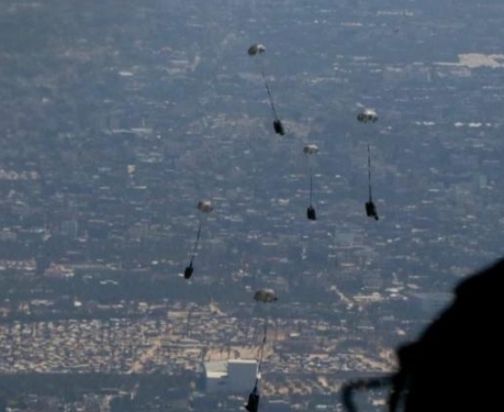 الجيش ينفذ 3 انزالات جوية لمساعدات على جنوب قطاع غزة