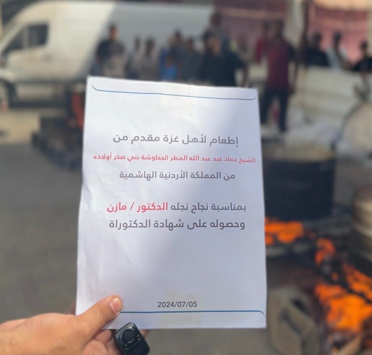 الدكتور فراس الجحاوشة يقيم مأدبة طعام ضخمة لأهالي قطاع غزةاحتفاءا بتخرج شقيقه بدرجة الدكتوراه