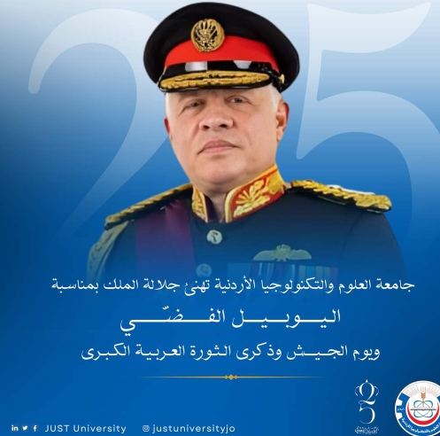 أسرة جامعة العلوم والتكنولوجيا الأردنية تهنئ جلالة الملك باليوبيل الفضي لتولي جلالة الملك سلطاته الدستوريَّة