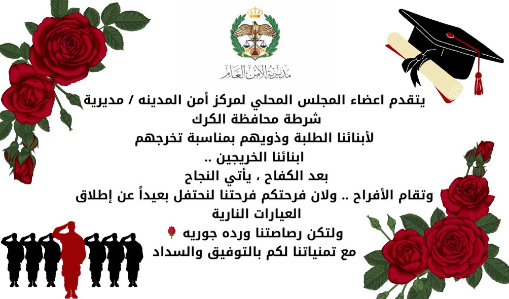 شرطة الكرك ممثلة بالشرطة المجتمعيه توزع المياه على ذوي خريجي الجناح العسكري