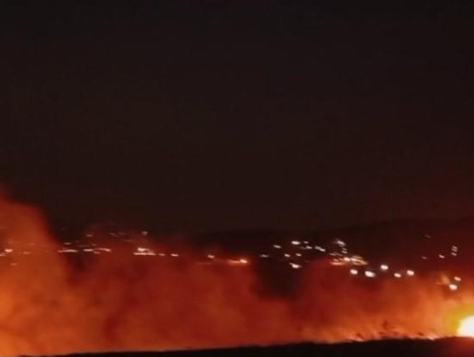 حريق ضخم يندلع بمساحات كبيرة من أراض بالمفرق