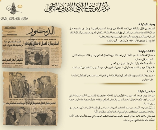 التوثيق الملكي يعرض وثيقة بمناسبة يوم العمال