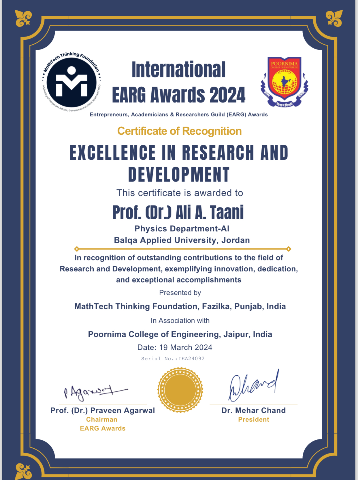 باحث في البلقاء التطبيقية يحصل على جائزة النقابة الدولية لرواد الأعمال والأكاديميين والباحثين