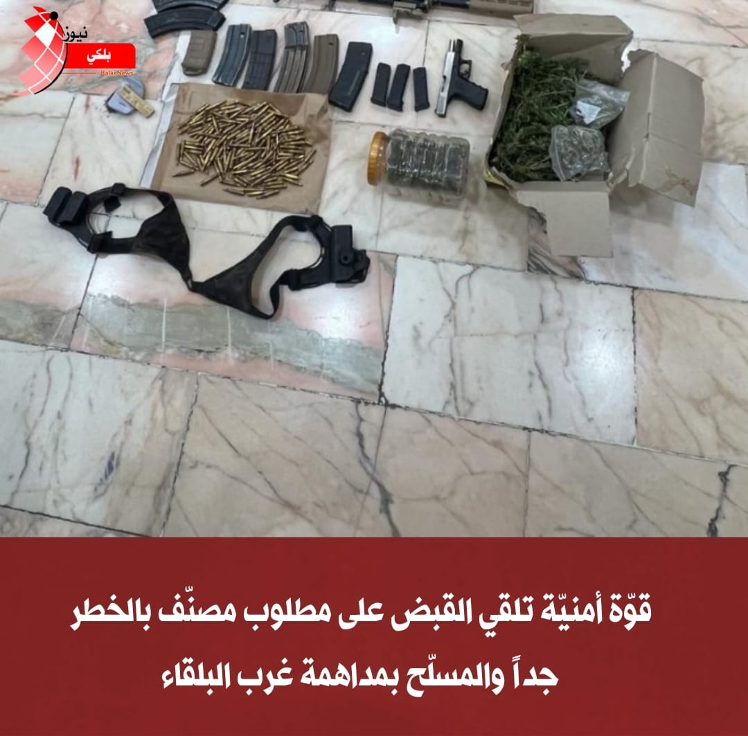 قوّة أمنيّة تلقي القبض على مطلوب مصنّف بالخطر جداً والمسلّح بمداهمة غرب البلقاء