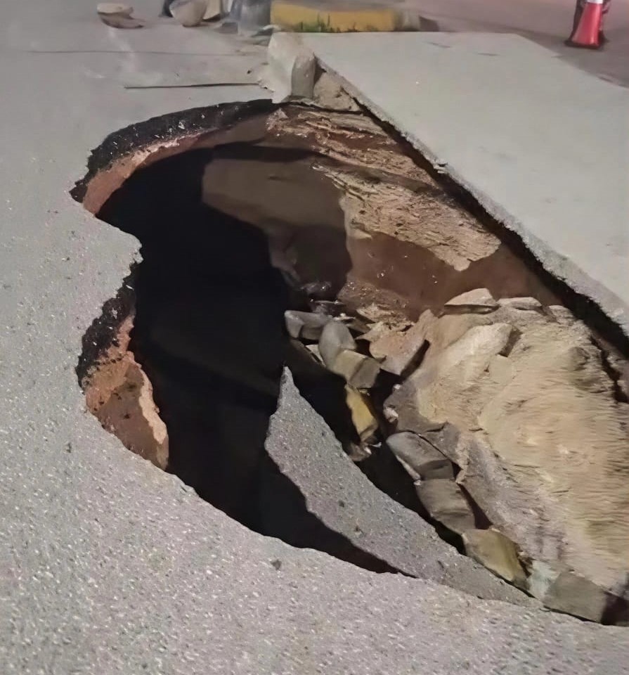 بلدية إربد: تسرب الصرف الصحي تسبب بانهيار جزئي في شارع "إسلام اباد