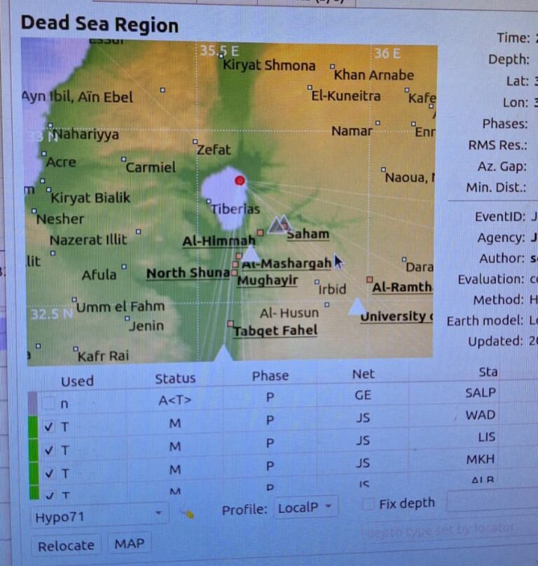 مرصد الزلازل الاردني يسجل هزة ارضية بقوة 3.9 في بحيرة طبريا