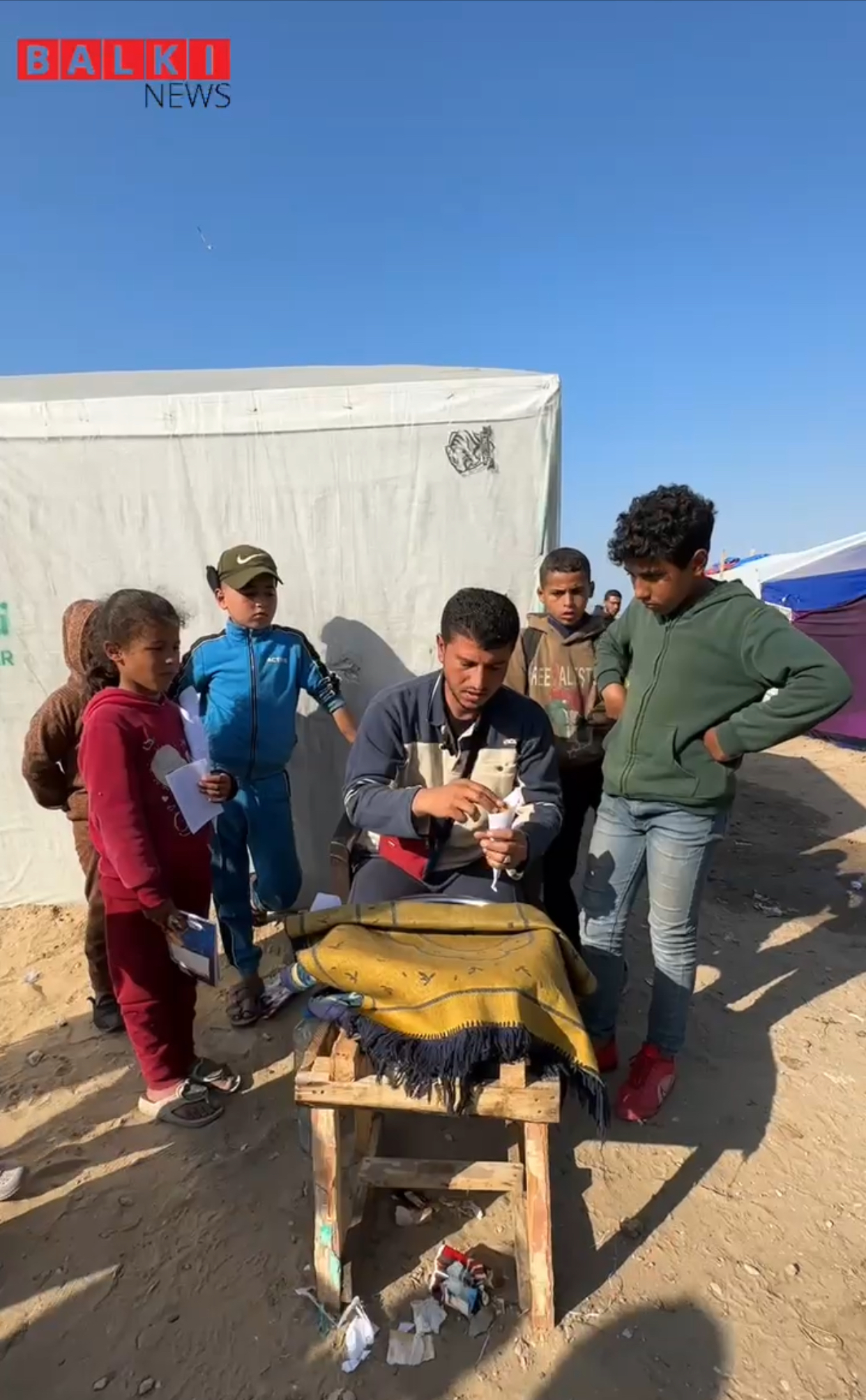 شاهد بالفيديو عدسة بلكي نيوز في غزة : نشطاء في القطاع يبتكرون طرق لإشغال وقت فراغ الأطفال في مخيمات النزوح .