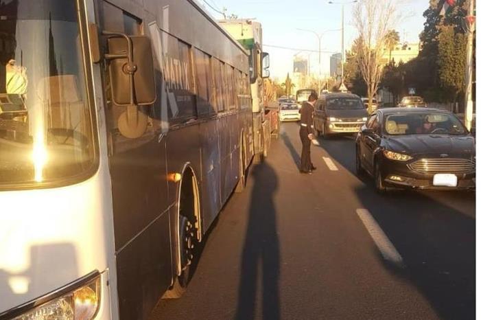 ازدحام مروري اثر تعطل حافلة بين الدوار الرابع والخامس في عمّان