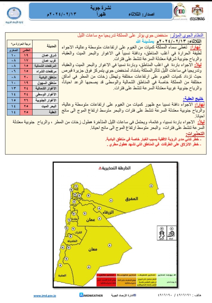 حالة الطقس المتوقعة يومي الثلاثاء والاربعاء