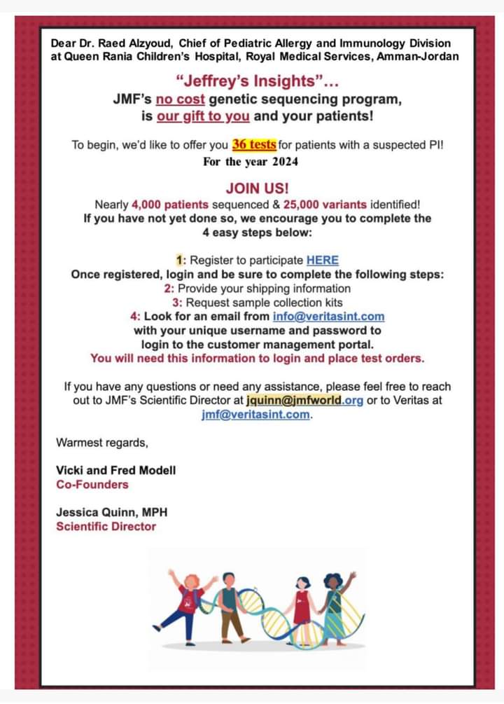 اعتماد قسم المناعة في مشتشفى الملكة رانيا للأطفال مركز مناعي عالمي…