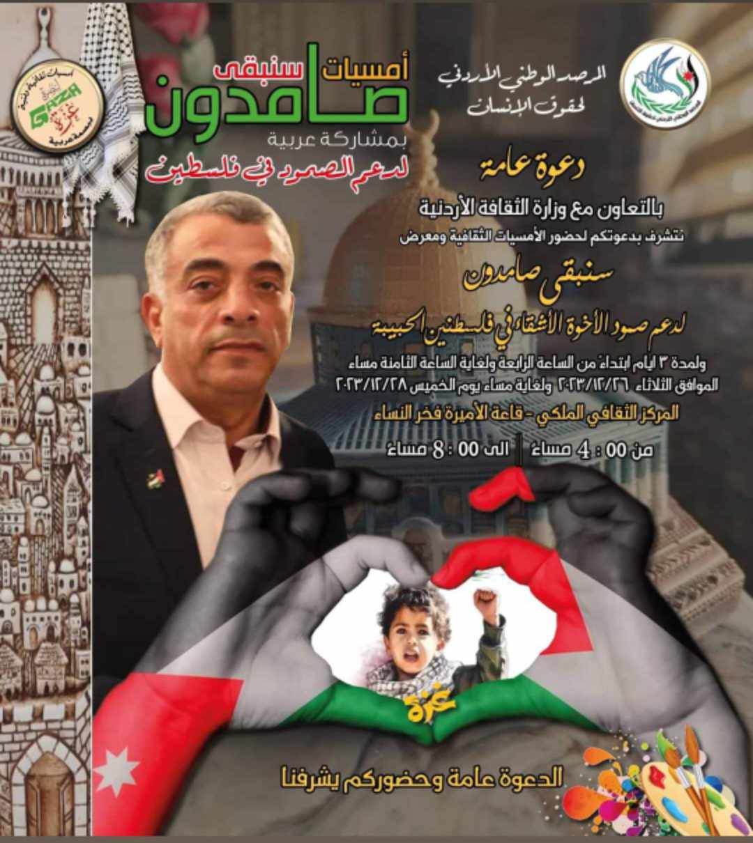 الوطني الاردني لحقوق الإنسان والثقافة ينظمان أمسيات ثقافية ومعرضًا بعنوان" سنبقى صامدون "