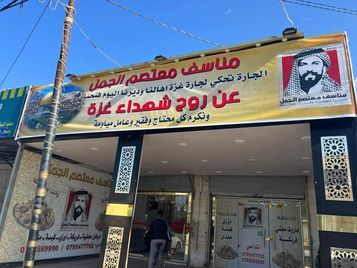 مطعم مناسف معتصم الجمل في اربد يوزع وجبات الطعام على أرواح شهداء غزة