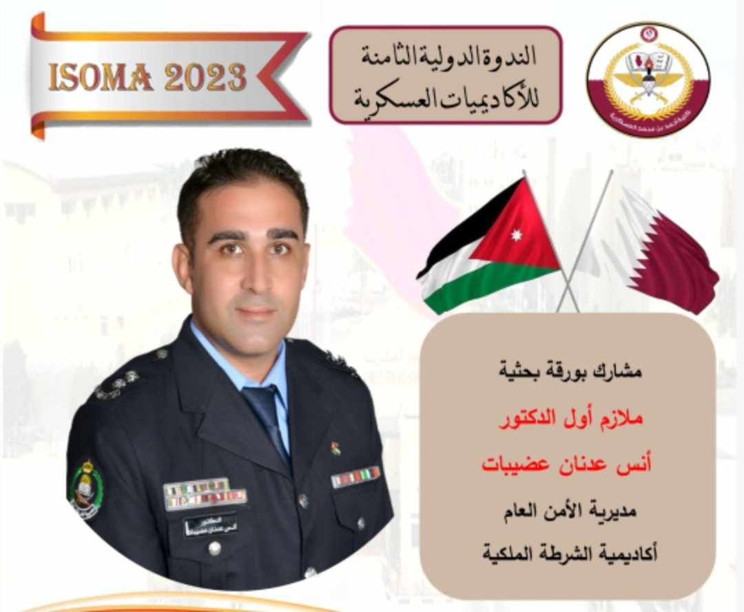 عضيبات ممثلا عن مديرية الأمن العام في الندوة الدولية الثامنة للأكاديميات العسكرية (ISOMA) في الدوحة قطر.