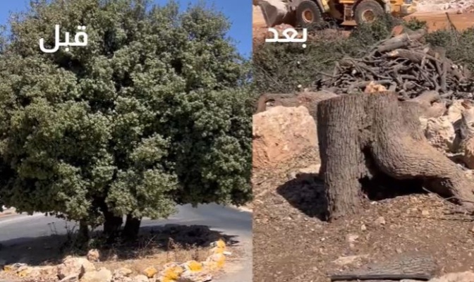 غضب شعبي عارم بعد قطع شجرة بلوط معمرة في الفحيص