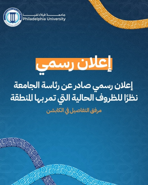 إعلان هام صادر عن رئاسة جامعة فيلادلفيا