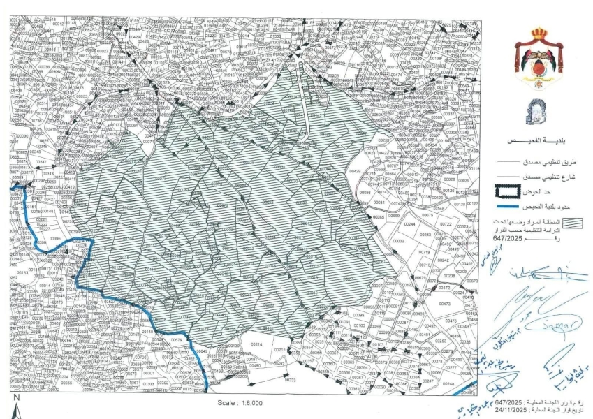 قرار لجنة بلدية الفحيص بصفته اللجنة المحلية للتنظيم رقم (647/2025) تاريخ (24/11/2025)