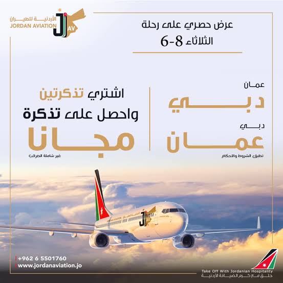 الأردنية للطيران تعلن عن تمديد العرض الحصري اشتري تذكرتين واحصل على تذكرة مجانا