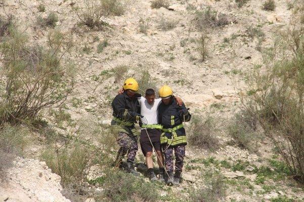 الدفاع المدني ينقذ شخصين علقا أسفل مقطع صخري في محافظة معان