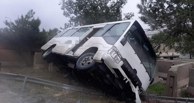 إصابتان في انقلاب باص على طريق المطار