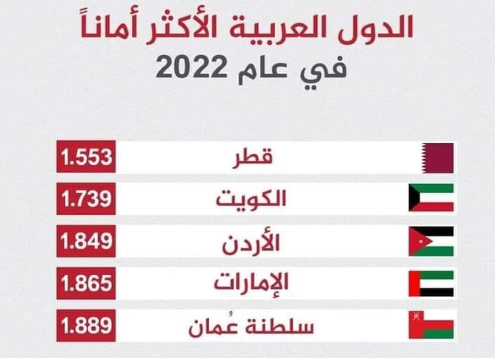عاجل / الاردن تحقق مرتبة متقدمة بأكثر الدول أماناً في العالم لعام 2022…. الثالثة عربيا
