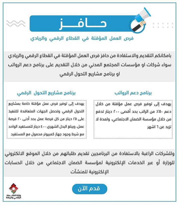 فرص عمل مؤقتة بالقطاع الرقمي والريادي